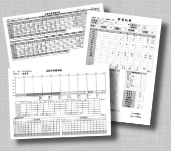 「帳 票」 「評価票、評価明細表、実績帳表」などの帳票類を印刷します。各種データ編集や印刷処理は選果中に並行して行えるので、効率良く日々の作業が行えます。 |