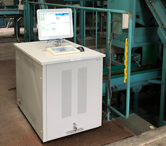 | 「評価パソコン」 荷受パソコンや搬送制御盤・荷替り表示器と連動して、荷口の搬送管理を行います。荷口の果実が画像処理装置を流れ終わった段階で評価データを取得し、ホッパースケールで計量した不良品・格外品重量を加味して評価データを作成記憶します。 |
